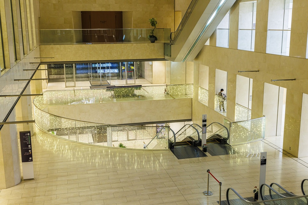 東京オペラシティの2024‐2025イルミネーションは、新国立劇場の甲州街道側通路の丸柱装飾を中心に、オペラシティ街区を彩る「シャンパンゴールドのLEDイルミネーション」で演出し、ガレリアに掛けたイルミネーションとともに2024年10月11日(金)から先行点灯。